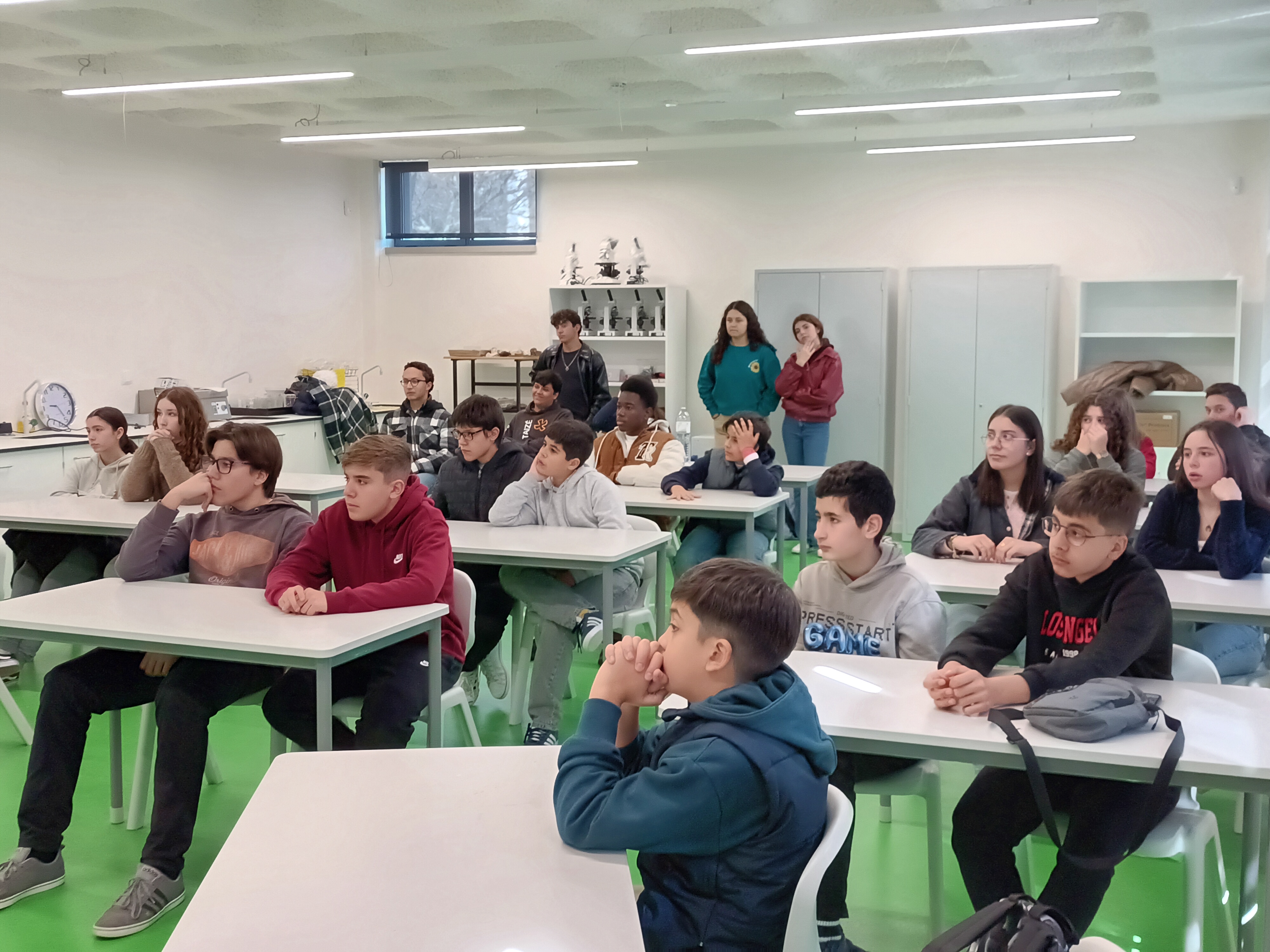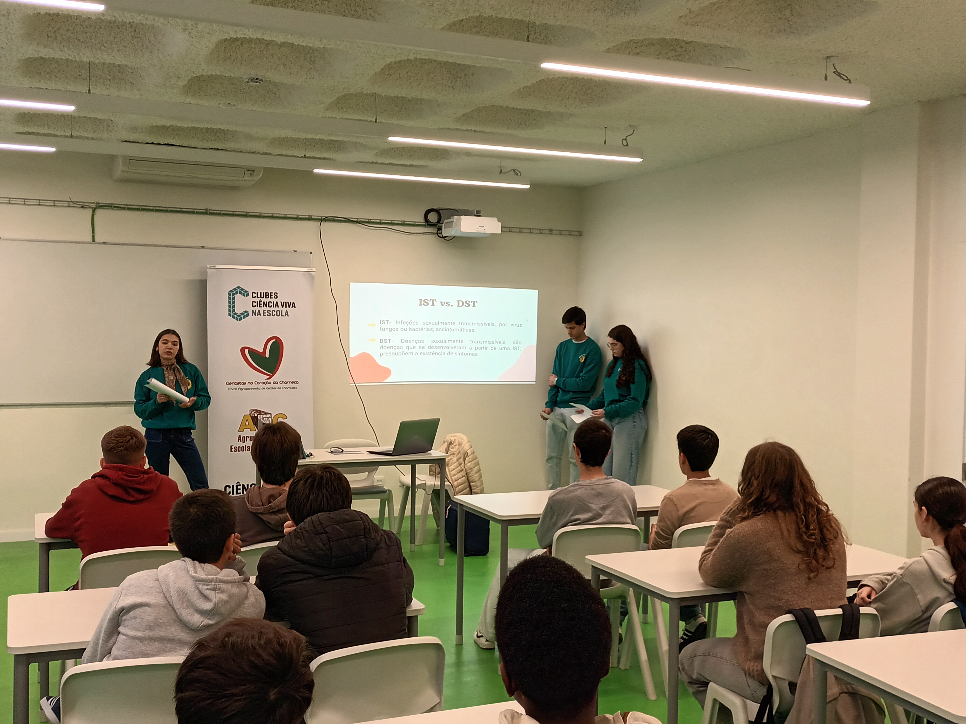 Um momento de partilha entre pares.  Alunos do 12ºA do CCV, de Biologia e da Associação de Estudantes, prepararam uma apresentação sobre Infeções Sexualmente Transmissíveis (IST), após desafio proposto pela DT do 8ºD Paula Dias no âmbito dos DAC da turma.
