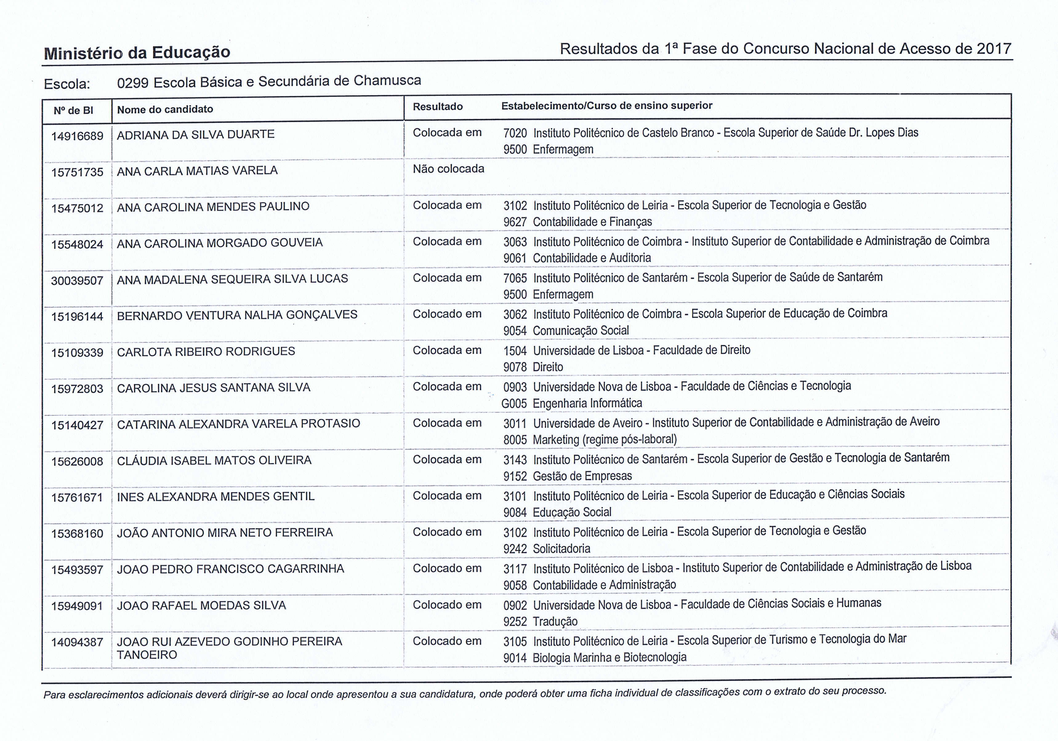 O Agrupamento de Escolas da Chamusca felicita os seus ex-alunos que acabam de ingressar no ensino superior e deseja-lhes a continuação de sucesso pessoal e académico. Dos 28 que se candidataram, 25 ficaram colocados nesta 1ª fase e mais de metade deles na 1º opção escolhida.