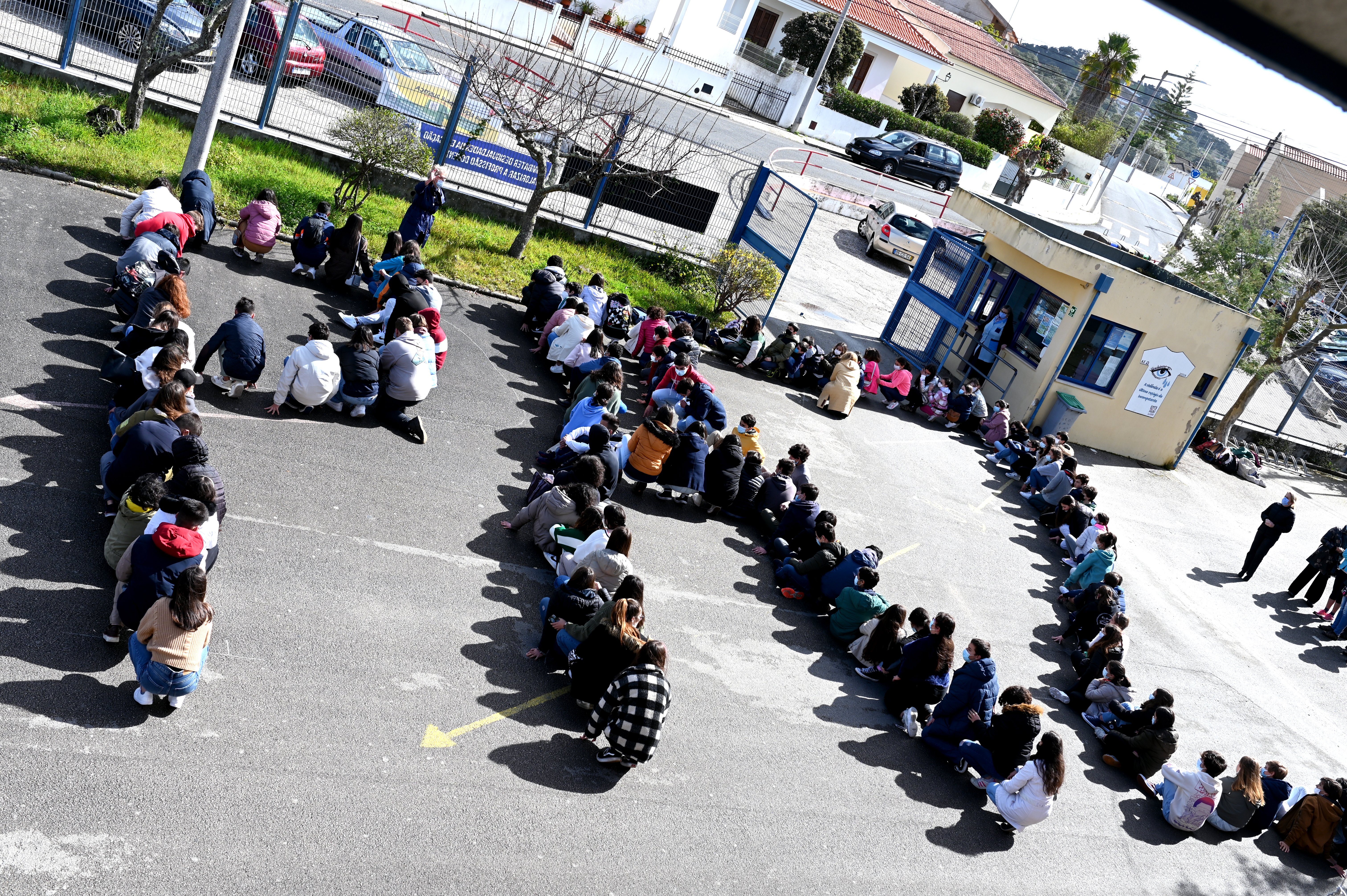 Membros da comunidade educativa formaram a palavra PAZ, enquanto se fez um minuto de silêncio pelas vítimas da guerra!"