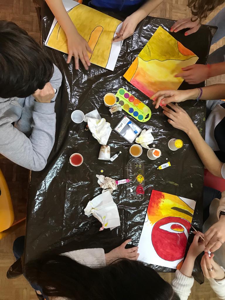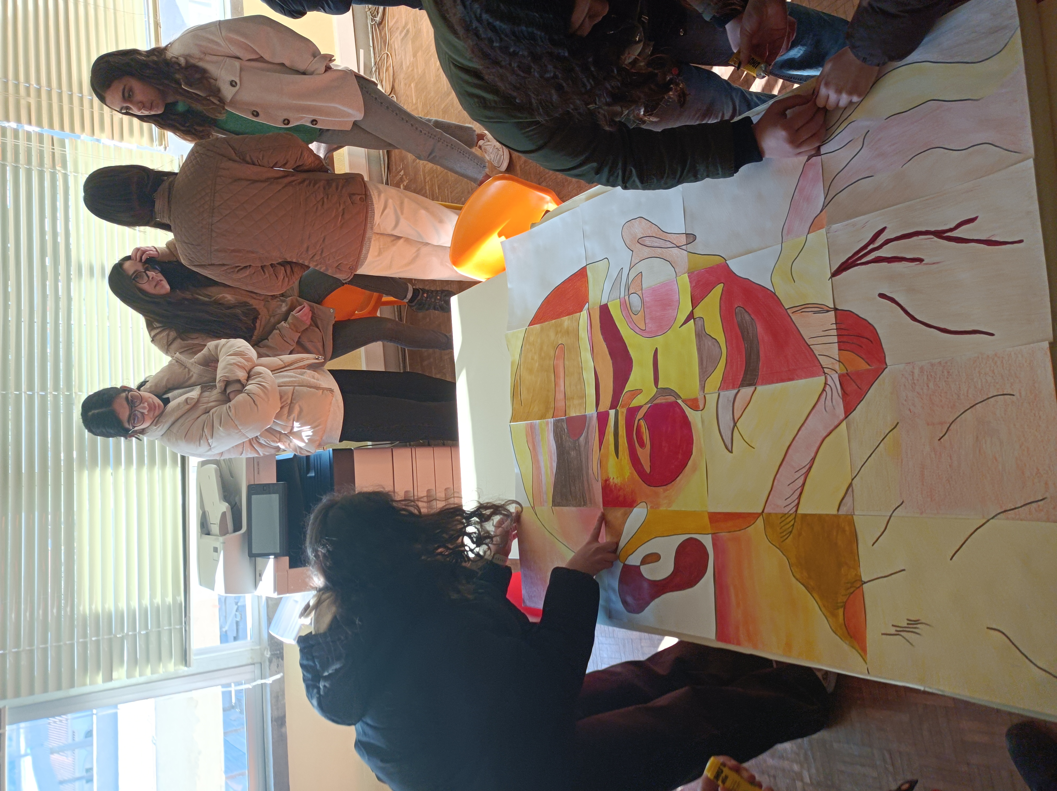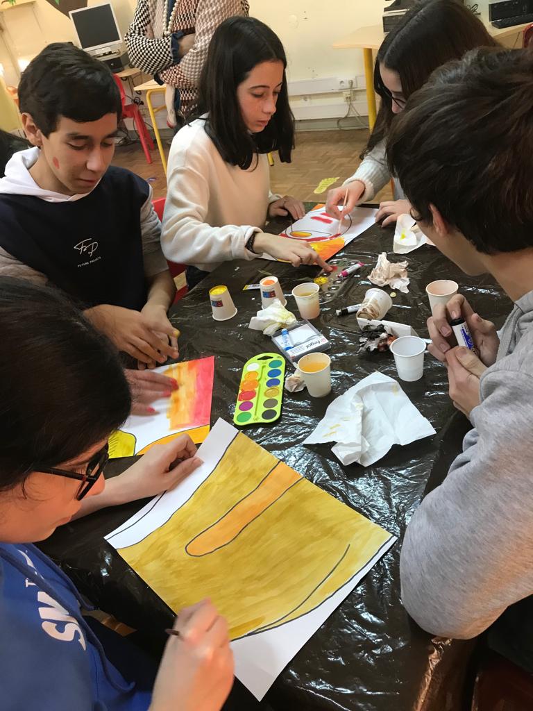 Num total de 18 folhas A4, os alunos foram desafiados a pintar nuns "rabiscos" cada um com uma folha, tendo como instrução "apenas utilizar tons fogo e terra". Sem saberem o que era o desenho, os alunos deram asas à imaginação e, no dia 30 de janeiro, aniversário da morte de Gandhi, juntaram-se todas as folhas e o resultado foi surpreendente!